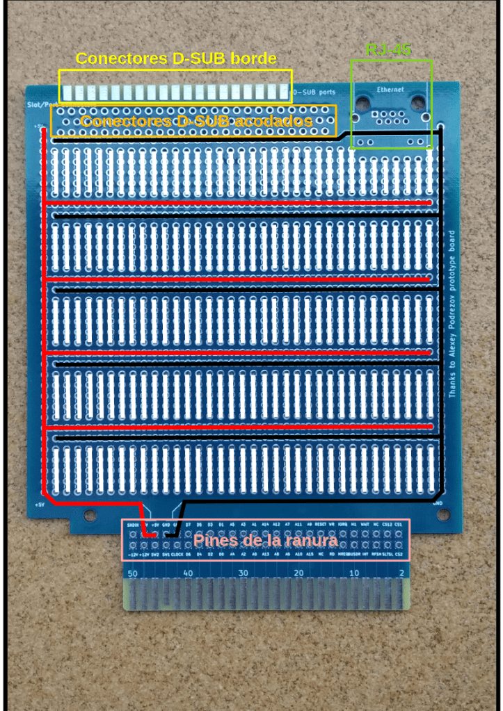 Con esta placa es perfectamente viable construir un proyecto nuevo. Tiene las dimensiones adecuadas para encajar en una carcasa de cartucho estándar (encaja a la perfección en las carcasas de Overrich), los agujeros también están correctamente ubicados y tiene 2 filas con las señales del slot disponibles, lo que facilita soldar un cable hacia cualquier punto donde estas se requieran. Además cada una de estas señales tiene una etiqueta indicando su nombre.