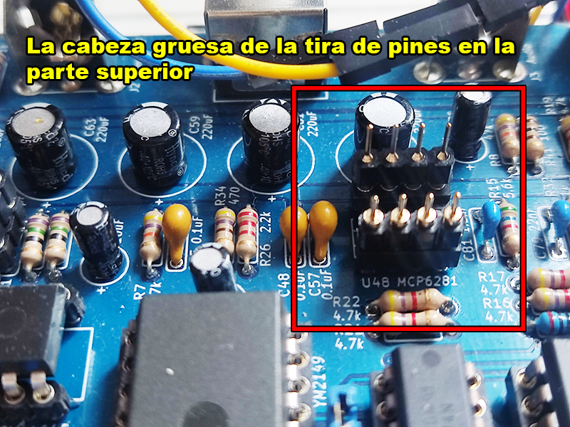 Una vez soldados todos estos pines a la placa FM/PAC ya podemos extraerla de los zócalos para proceder a soldar el resto de los componentes.