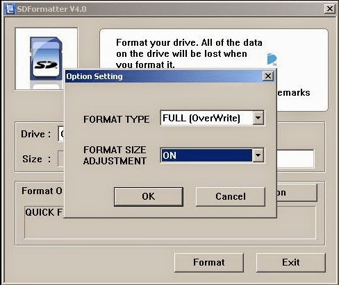 Antes de seguir, presta atención al tamaño de la unidad detectada y, si es posible, identificarla también por su letra de unidad antes de destruir el contenido de una unidad valida. Antes de formatear la unidad, configure las opciones como sigue: