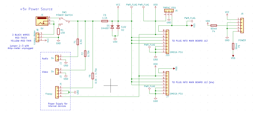 Conforme el proyecto Omega crecía, fueron apareciendo nuevas ampliaciones posibles que alimentar de la fuente. Así, si queríamos incorporar una disquetera a la caja el primer paso necesario era donde tomar la alimentación, y del mismo modo otros accesorios.