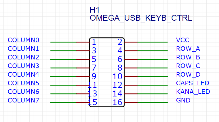 Ya os adelantamos que los dos pines que faltan para llegar a los 16 pines de la placa OMEGA USB KEY CTRL son los LED de CAPS y KANA, que no son relevantes.