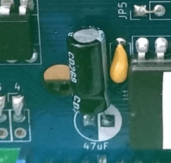 El condensador electrolítico debería ir tumbado como se muestra en la foto siguiente.