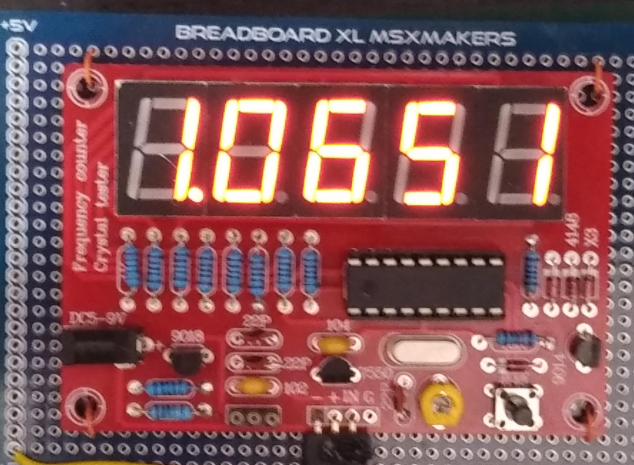 Si no tenemos osciloscopio se puede medir igual con un frecuencímetro (también hay polímetros que miden frecuencia). Verías algo como en la siguiente foto: