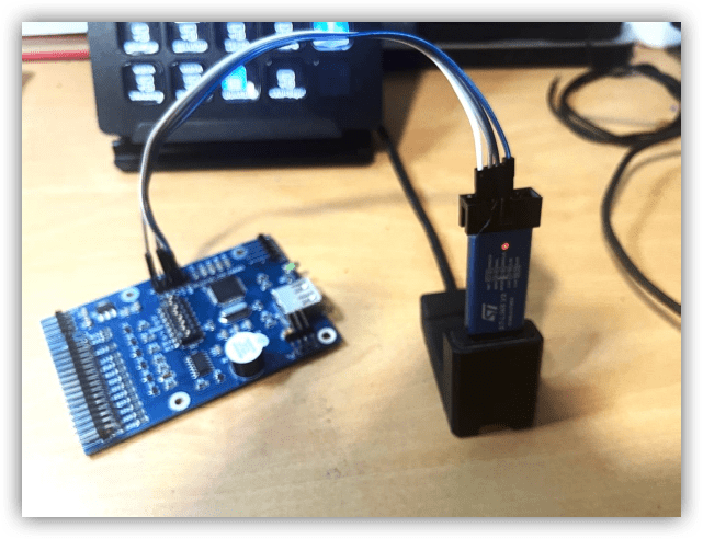 Usaremos un ST-link v2, en cuyo lateral tiene unas inscripciones.