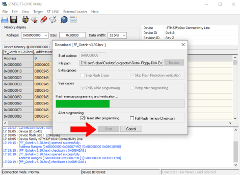 En la nueva ventana que aparecerá debéis pulsar “Start”, el programa se pondrá en marcha y comenzará la programación, mientras termina verás su estado en la barra de progreso.