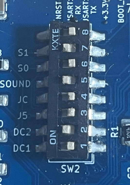 Si todo ha ido bien, !Enhorabuena! ya tienes la Gotek programada y funcional. Ya podemos desconectar el ST-link v2 del PC y de la placa electrónica. Antes de continuar pondremos los interruptores en su posición correcta. Para MSX serán los de la siguiente imagen: