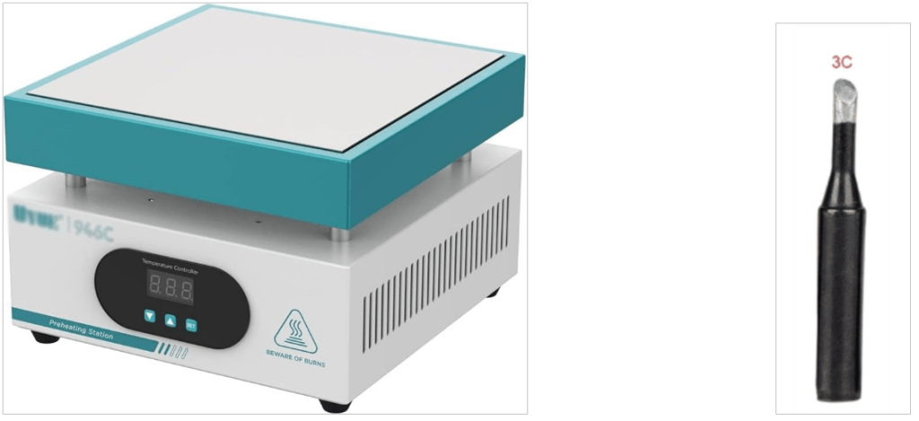 18- un soldador con punta diagonal 3mm (3c) y una placa calentamiento: