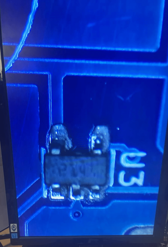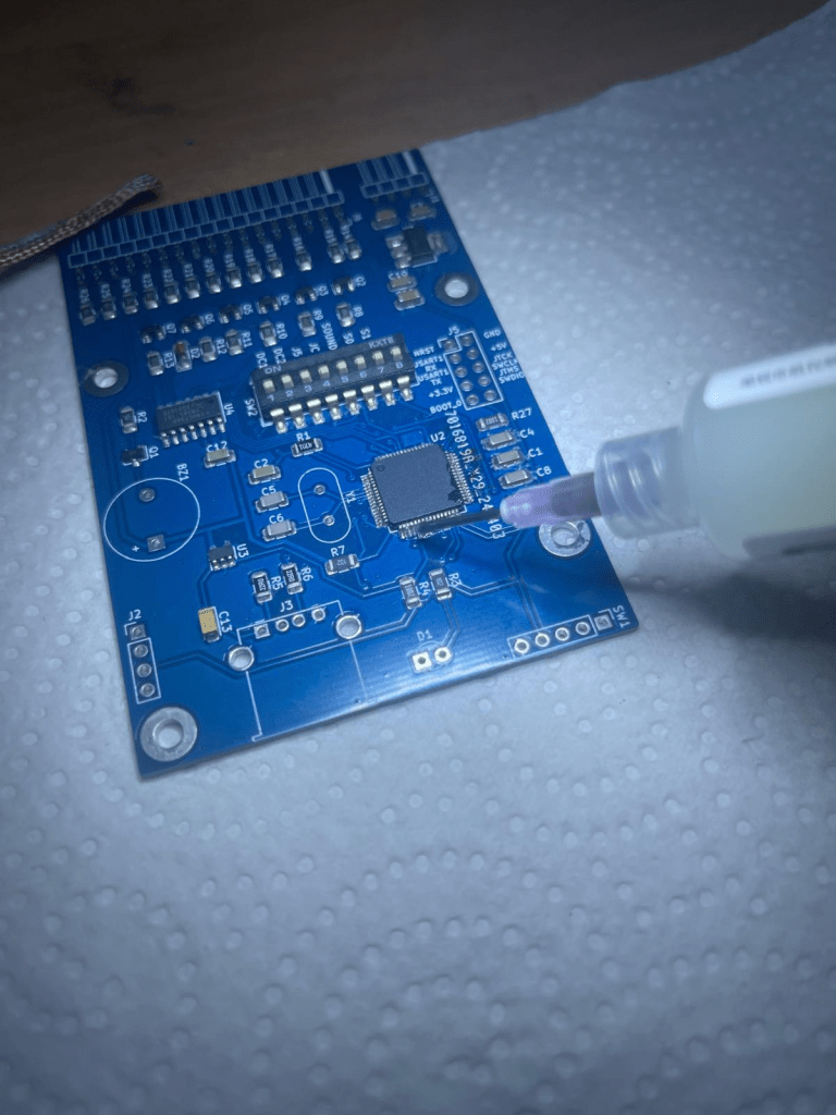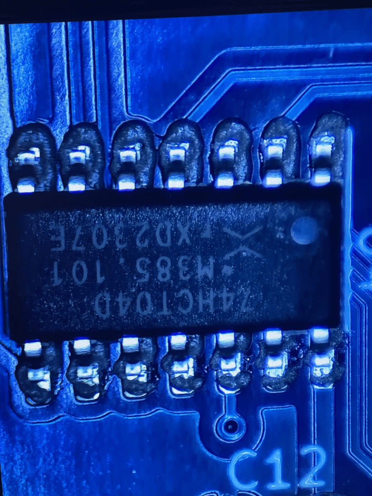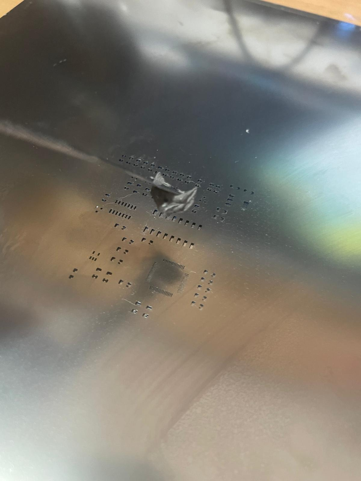 Bien, como veréis tiene “algún cruce” 🤣🤣🤣, pero como ya he dicho no hay problema. Aplicaremos un poco de flux a lo largo de las patillas, colocaremos la malla encima de las patillas, ponemos el soldador encima y lo movemos siempre de dentro hacia fuera y con mucho mimo, lo suficiente para no quitar todo el estaño, no tengáis prisa y si tenéis que hacer el procedimiento varias veces no pasa nada, es preferible. Este procedimiento lo aplico en los 4 lados del “U2”. El resultado final vale la pena.