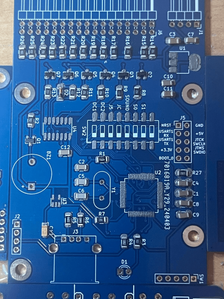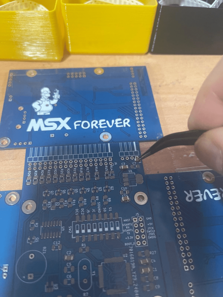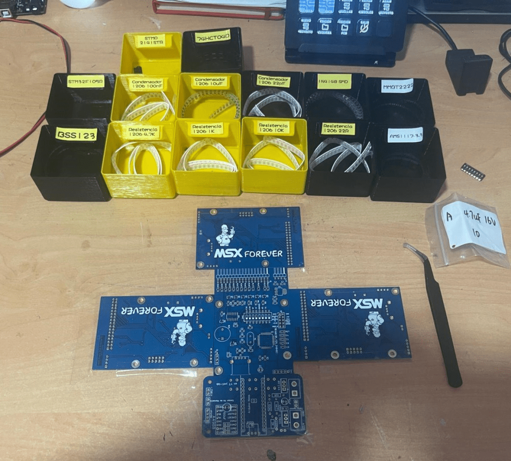 No quitaremos las PCB de los lados ya que ayuda a ayuda a mantener todo en su sitio y así trabajar cómodamente. Seguidamente preparo todos los componentes SMD que utilizaré bien ordenados y cada vez que acabo con uno lo guardo evitando que moleste.