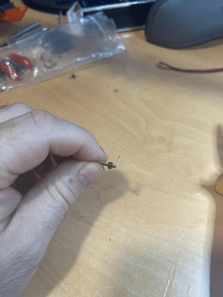 Ahora pasaremos una lima o una broca de 3mm por el orificio del frontal, para que se ajuste bien al tamaño del led.