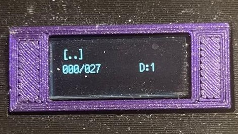 Una vez agregados y con el MSX apagado, insertas el USB en la unidad Gotek, ahora mantienes pulsado el encoder y enciendes el MSX, aun no sueltes el pulsador del encoder, hasta que aparezca algo como esto: