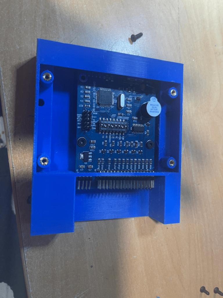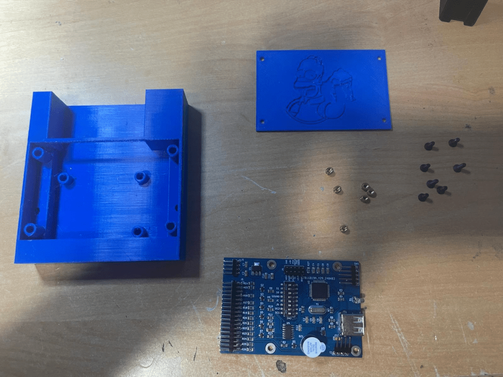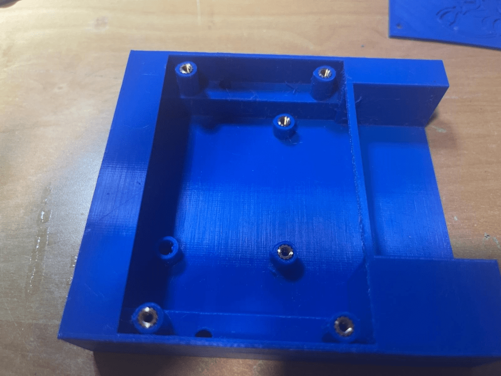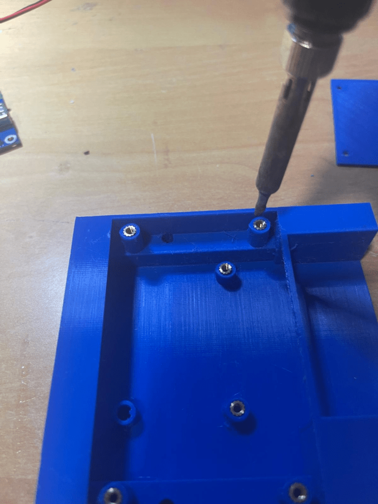 No se vayan todavía, aun hay más!! A no ser que quieras tener la placa sin protección, cosa que no aconsejo. He diseñado una carcasa para imprimir en 3D. Una vez impresa y limpia de los soportes comenzaremos a trabajar en ella, no hay mucho que hacer por lo que será rápido. En la siguiente foto muestro el material a utilizar. Se muestran unas “tuercas de inserción” de 3x5mm y tornillos de cabeza avellanada de 3x8mm.