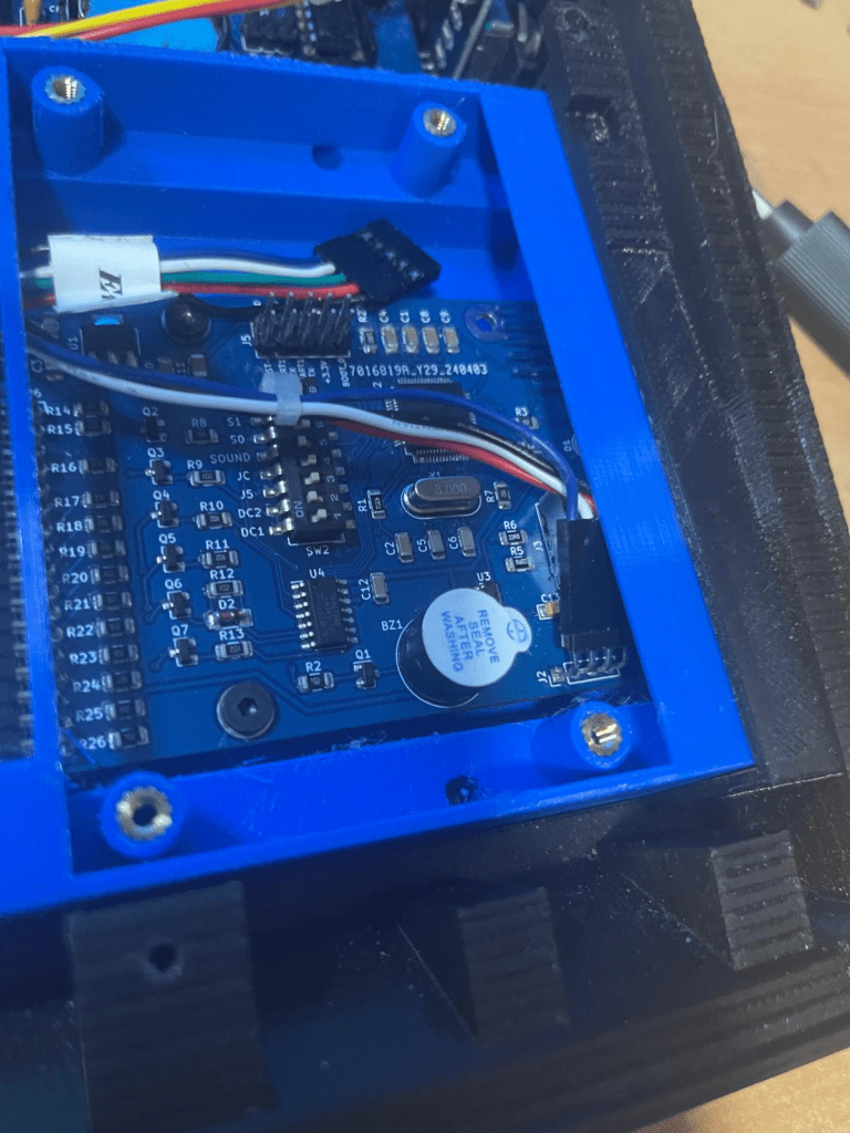 Procederemos a conectar la pantalla, el encoder, la alimentación y el cable de datos para realizar una actualización antes de continuar con la instalación del Gotek. Si al montar la pantalla o el encoder no funcionan desconecta y dales la vuelta a los conectores DuPont. Por cierto, ya puedes quitar la pegatina del zumbador.