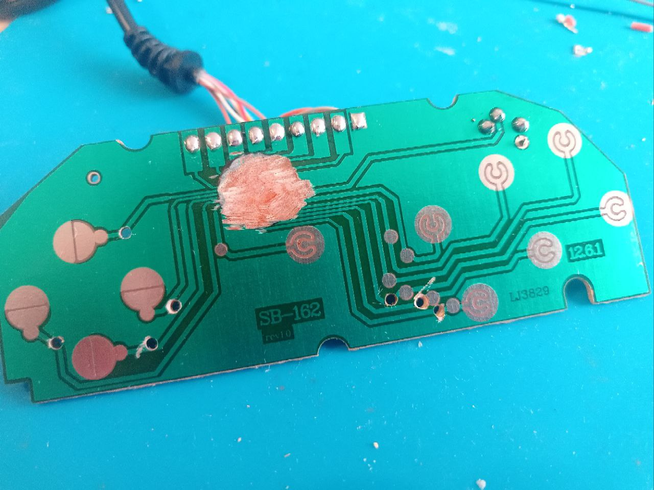 La placa que utilizamos en este tutorial aparece marcada como SB-162, con la etiqueta 12.6.1. Es posible que otros mandos similares utilicen la misma placa, pero lo suyo es que miréis las conexiones con vuestro propio multímetro, por si las conexiones no fueran idénticas: es mejor que lo comprobéis y no quemar nada antes que lanzaros a seguir este tutorial sin mirar.
